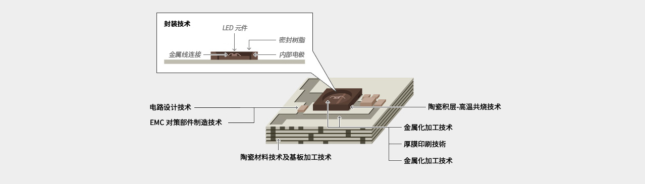 MARUWA以陶瓷技术为核心,现在开展了4个领域的事业(陶瓷、电子元器件/组件、石英玻璃、LED照明)。